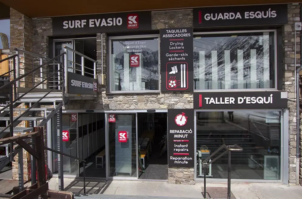 Le magasin de sports d’hiver Surf Evasió 2 accompagne les skieurs de tous niveaux en leur proposant, à des tarifs compétitifs, un équipement parfaitement adapté pour profiter pleinement des pistes de Grandvalira, dans les meilleures conditions de confort et de sécurité. Adresse incontournable au Pas de la Case, l’enseigne s’est forgée une solide réputation grâce à la qualité de son accueil et à l’expertise de son équipe. Sur place, les clients bénéficient d’un accompagnement personnalisé : aide au choix du matériel le plus adapté, conseils techniques, mais aussi possibilité de réserver directement forfaits, cours de ski ou de snowboard. Une offre complète qui fait de Surf Evasió 2 une référence pour préparer sereinement son séjour en Andorre.